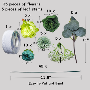 Bulk 40Pcs Teal Blue Green Artificial Flowers Combo Box Set for Wedding Crafts Wholesale