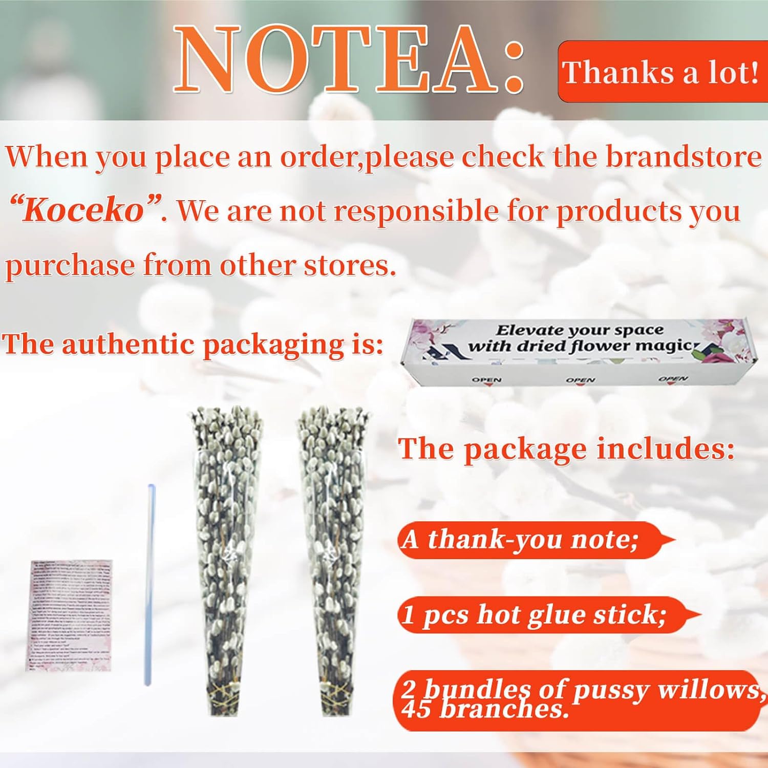 - Handle With Care: After drying, the buds on the branches will easily fall off, which is an inevitable problem with air-dried willow branches. Although we will select branches with enough buds and pack them carefully, it is still possible that there will be fewer buds. please be careful not to touch the buds directly when using.