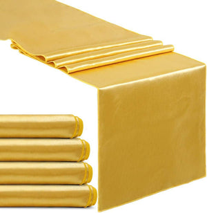 Bulk 5 Pack Gold Satin Table Runners 12x108 inch for Wedding Party Banquet Decorations Wholesale