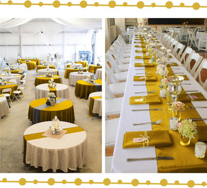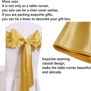 - Usage: Used for weddings, banquets, birthday or dinner party, bridal or baby shower, candy buffet, and other various parties. This practical satin table runner can be used for chair cover sashes or ornaments as well.