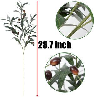 - Elevate your event and party décor with our exquisite Artificial Olive Branches. Crafted from high-quality artificial silk, these lifelike branches bring the charm of the Mediterranean to any setting. Each order includes 5 vase-ready faux branches, with each olive branch measuring approximately 28.7 inches tall. With 54 lush leaves and 12 realistic olives per branch, these branches add a touch of natural elegance to your space.