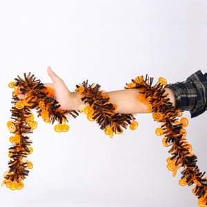 - Description Elevate your Halloween decorations with our Bulk Halloween Pumpkin and Ghost Garland. Perfect for adding a spooky and festive touch to any setting, these dense tinsel streamers will make your Halloween celebrations unforgettable.