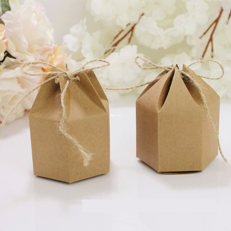 Bulk 50 Pack Gift Boxes Hexagon Kraft Package Box with Wrap Gift for Wedding Birthday Party Candy Chocolate Packing Wholesale