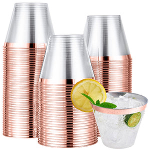 Bulk 50 Pcs 9 oz Gold Plastic Cups Elegant Clear Disposable Wine Glasses with Gold Rim for Wedding Party Wholesale