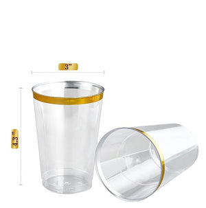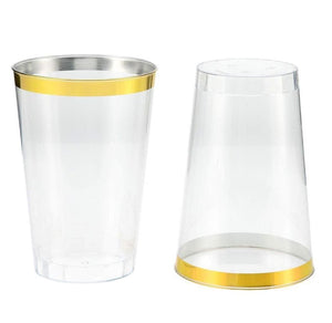 Bulk 50 Pcs 9oz/270ml Disposable Plastic Cups with Gold Rimmed Wholesale