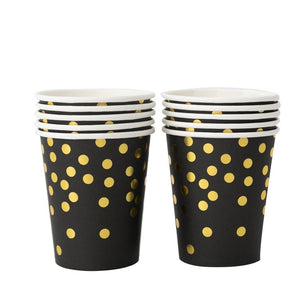 Bulk 50 Pcs Disposable Party Dinnerware Set with Golden Dot Paper Plate Paper Cup Napkin Tableware Set Wholesale