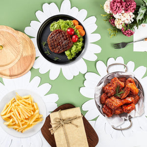 - Material: Crafted from paper, our Disposable Sunflower Shaped Paper Placemats are both eco-friendly and charming. The lightweight paper construction ensures ease of use while maintaining durability.