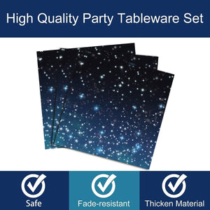 Time-saving convenience allows for hassle-free cleanup after your event! Simply dispose of the supplies without worrying about the mess. This feature enables you to spend more quality time celebrating with family and friends. Lightweight and portable, our space party supplies are perfect for both indoor and outdoor celebrations. Ideal for various occasions, including birthday parties and space-themed events, they are safe for use around babies and pregnant individuals. - Transform your next birthday party into an unforgettable space adventure with our 50-Piece Navy Space Themed Birthday Party Supplies Set!