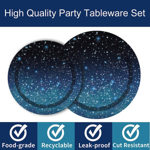 Bulk 50 Pcs Navy Space Themed Birthday Party Set Happy Birthday Paper Plates Tableware for 10 Guests Outer Space Decorations Wholesale