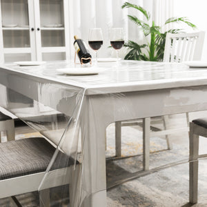 - Made of high quality and durable PVC, it provides you with superior strength and durability, while also providing the convenience of stain and water resistance for your dining activities. Offers a complete 100% water resistance, scratch, oil and other leak protection for your table. This simple wipe clean countertop is stain resistant and wrinkle free. Wipe the table cloth clean with a damp cloth (recommended). Do not machine wash. Do not bleach or iron.
