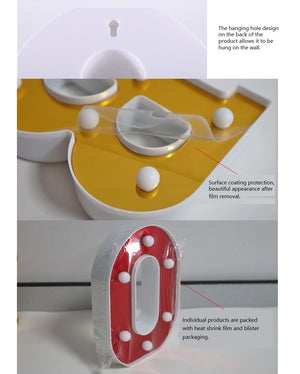 - It is made of high-quality PP plastic, which is lightweight and durable, not easily damaged and guaranteed to be used for a long time. Each English letter and number is designed with a gold mirror surface, which emits a charming light and embellishes your scene with brilliance. The hanging hole is designed on the back of the product, allowing you to easily hang the lamp on the wall to realize your layout imagination. Each product is protected by a surface coating to ensure it is not damaged during transportation. Once the film is removed, the fixture will have a beautiful and atmospheric appearance. Individual products are packed in shrink-wrapped and blister packaging to ensure they reach you safely.