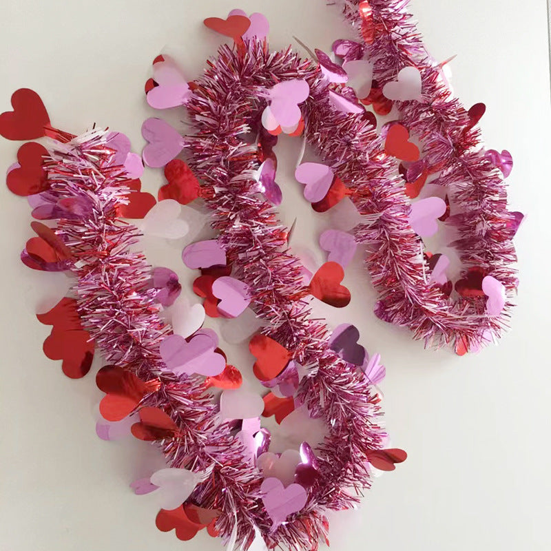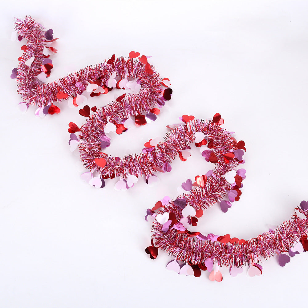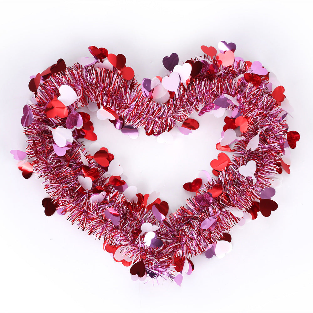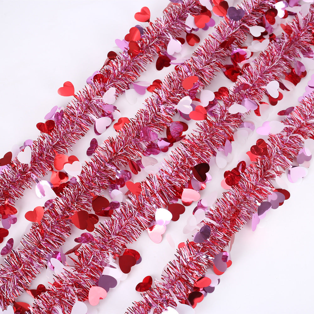 Bulk 6.56Ft Valentine's Day Heart Tinsel Garland in Red Pink White for Home Wedding Valentines Day Party Decor Wholesale