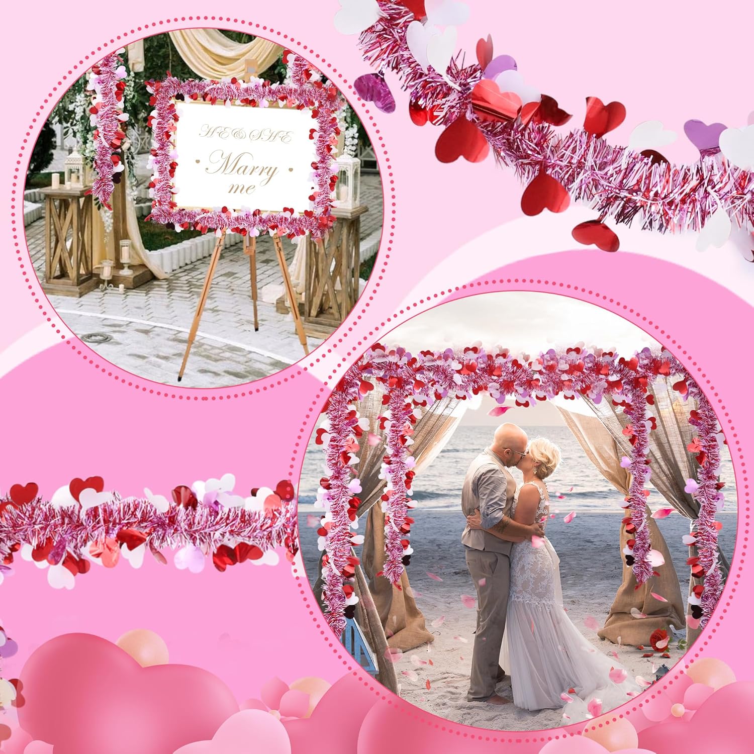 - Use: Valentine's Day decorations. Put these shinny garlands on trees, fireplace, wall, window, ceiling, home stairs, banister, and doors etc. decorations for Valentine's Day, wedding, anniversary, birthday, galentine’s party and school event.
