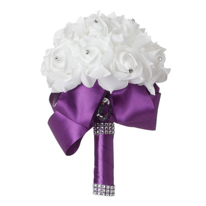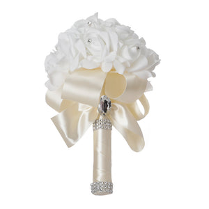 - The delicate handles of this bridal bouquet are wrapped in a soft ribbon and decorated with shiny rhinestones. Soft and fresh, they look and feel like real roses. All of these are handmade to ensure quality.