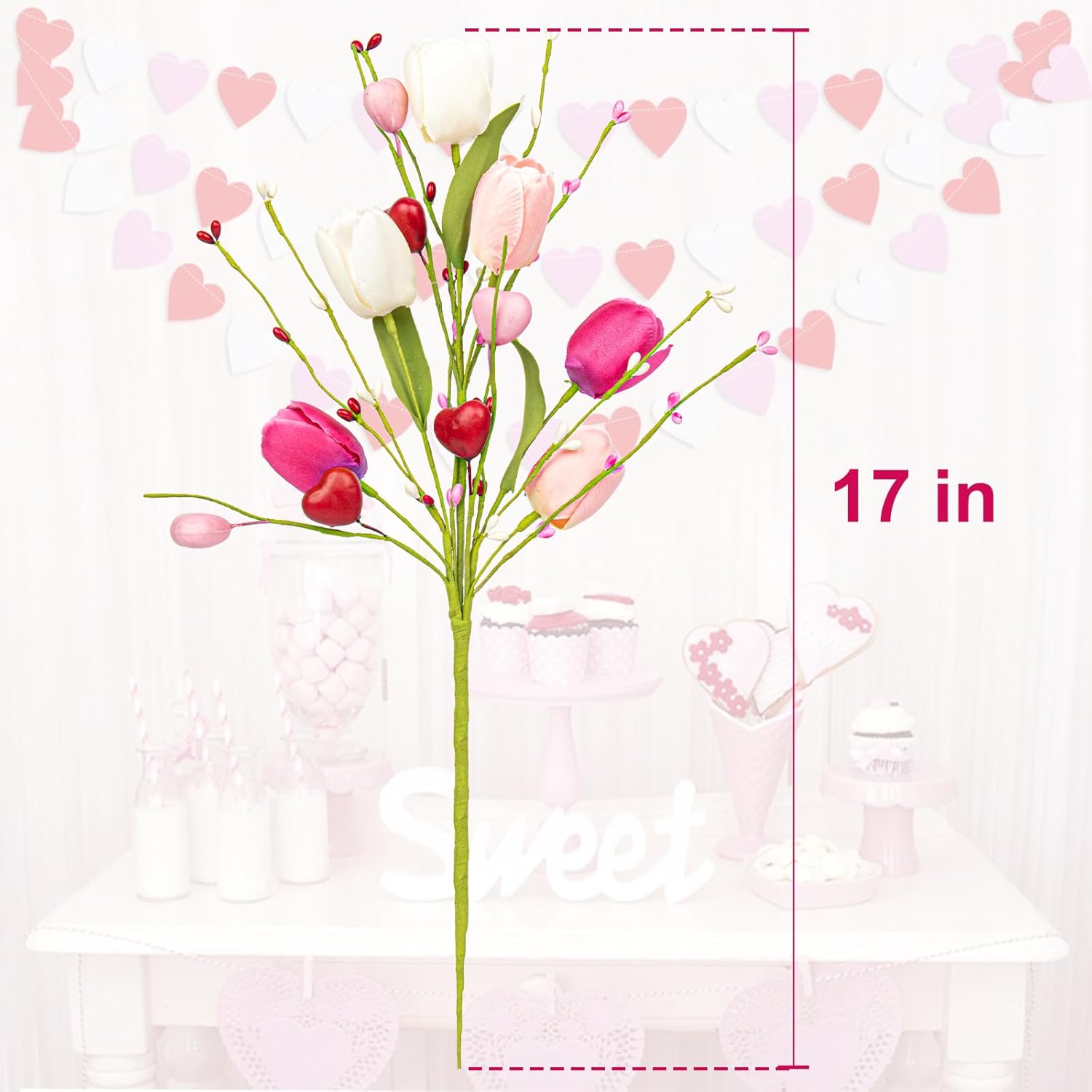 Each pack includes 6 artificial tulip and berry stems, featuring lifelike blooms and flexible branches for easy styling.