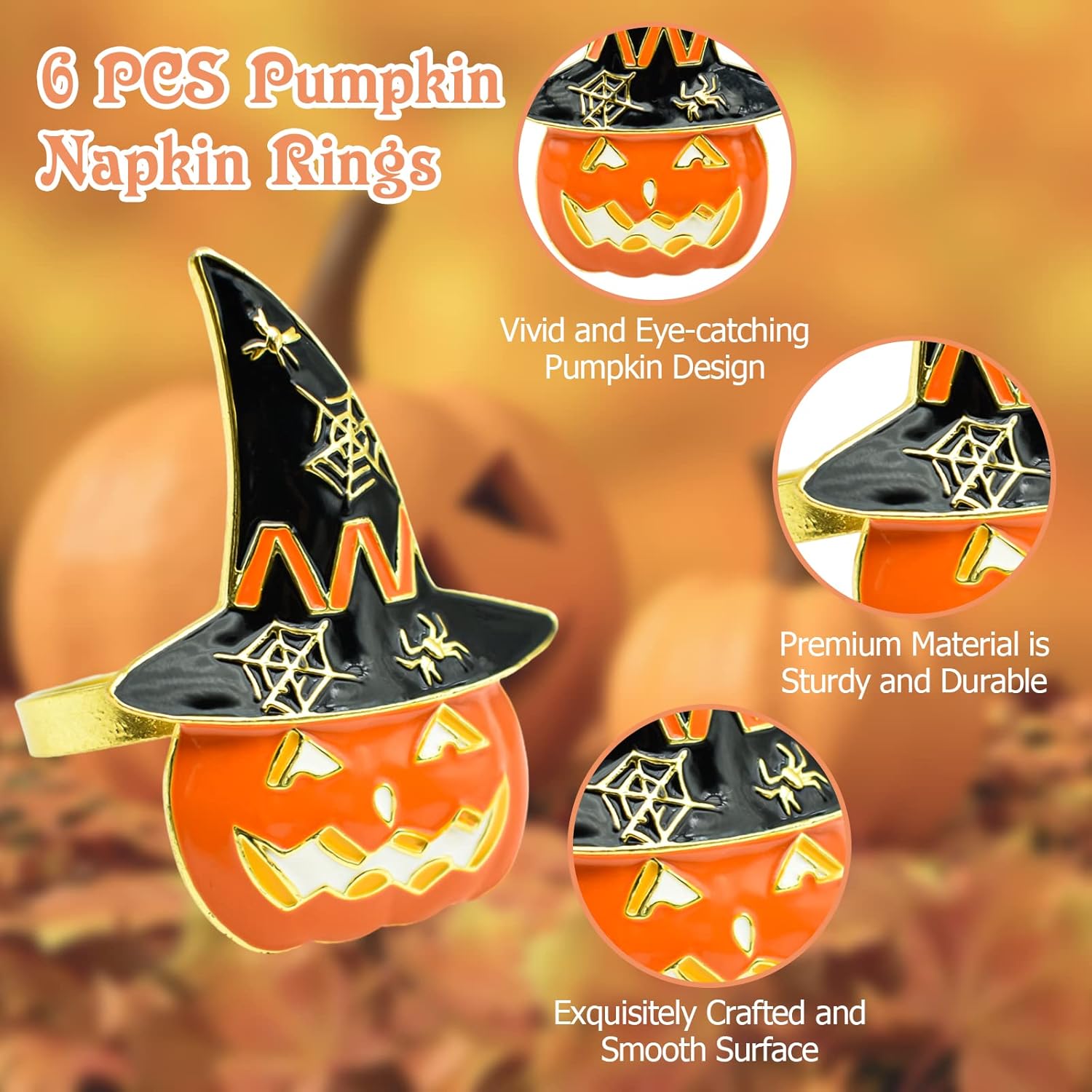 Bulk 6 Pcs Spooky Halloween Napkin Rings Orange Pumpkin and Black Witch Hat Design for Festive Party Table Decor Wholesale