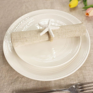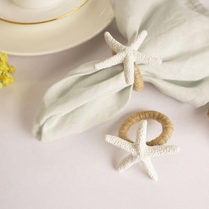 - Elevate your table decor with these exquisite White Starfish Napkin Rings. Each piece is delicately crafted to resemble the intricate beauty of a sea star, infusing your gatherings with a sense of coastal elegance. Their neutral white hue complements any color scheme, while their durable resin construction ensures longevity. Whether adorning your table for a casual beach picnic or a formal wedding reception, these napkin rings effortlessly elevate the ambiance with their timeless charm.