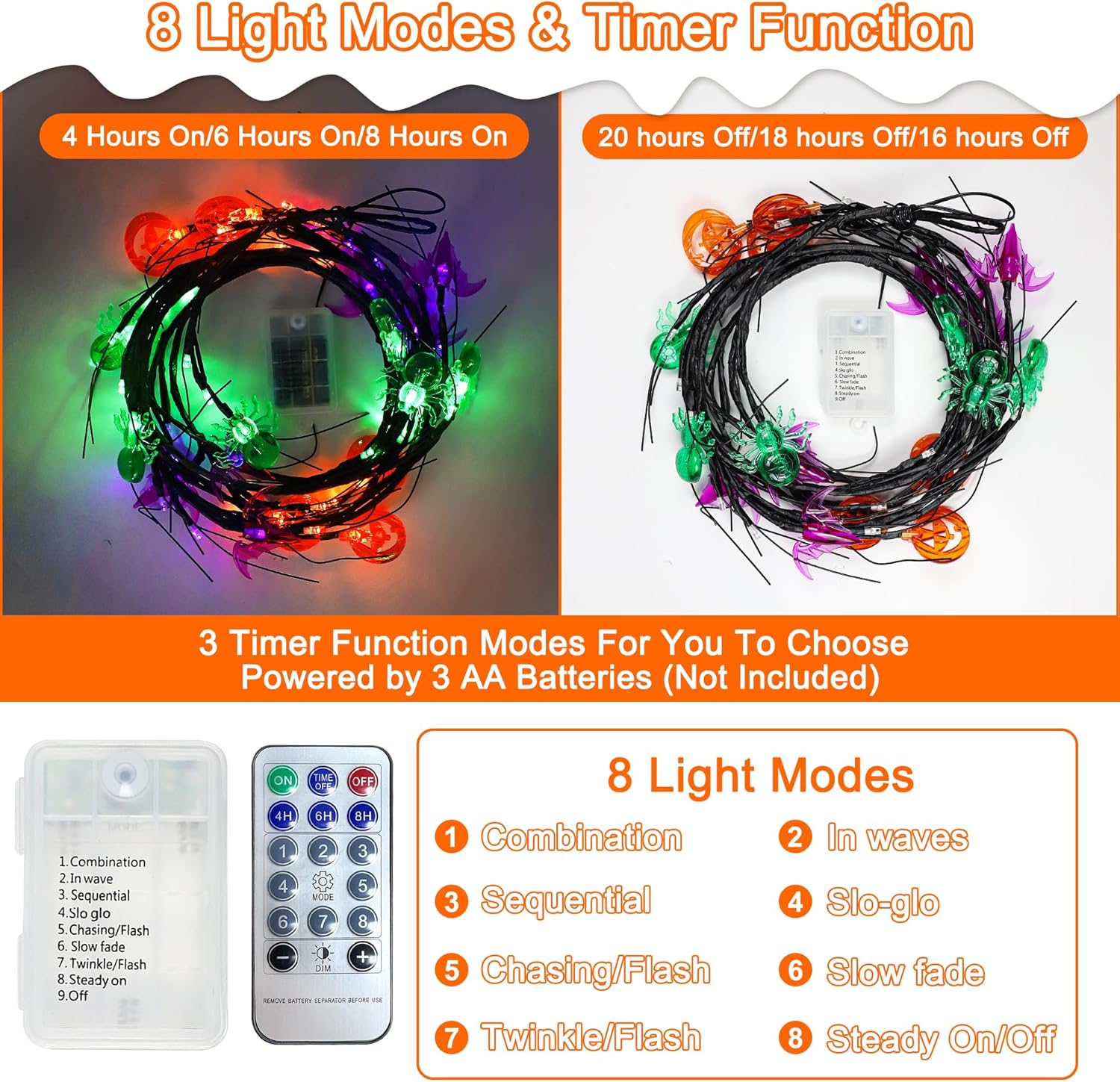 - Battery-Powered with Timer: Powered by 3 AA batteries (not included), this light-up Halloween decoration features a timer function. Once activated, the timer will light up the garland for 6 hours and then automatically turn off, only to light up again 18 hours later, repeating the cycle daily until you turn it off.