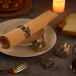 - Elevate your dining experience with these Vintage Leaf Napkin Rings. Whether you're hosting a formal dinner party or enjoying a cozy family meal, these napkin rings add a charming touch to your table decor. The intricate leaf design captures the essence of autumn, making them perfect for seasonal celebrations and everyday use alike.