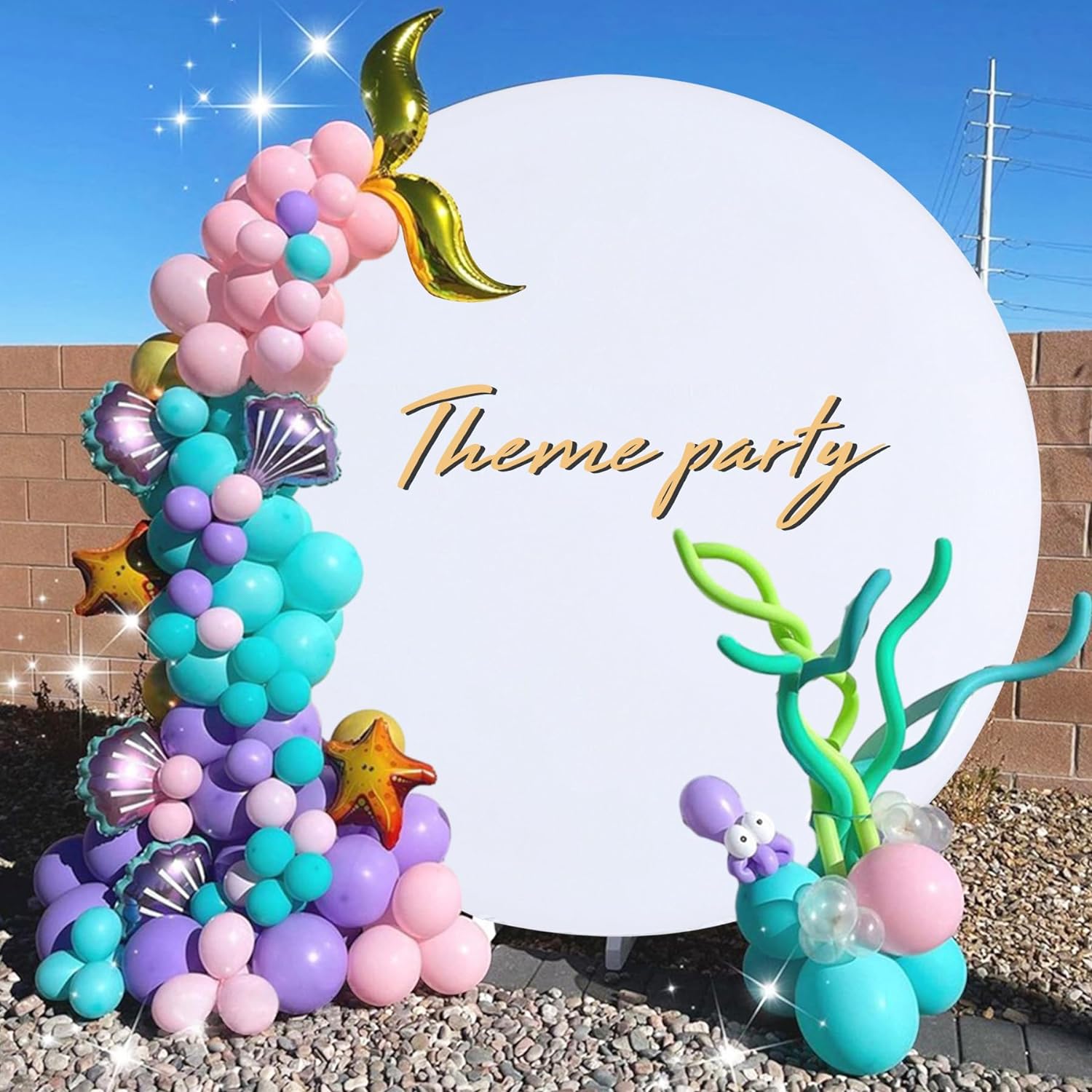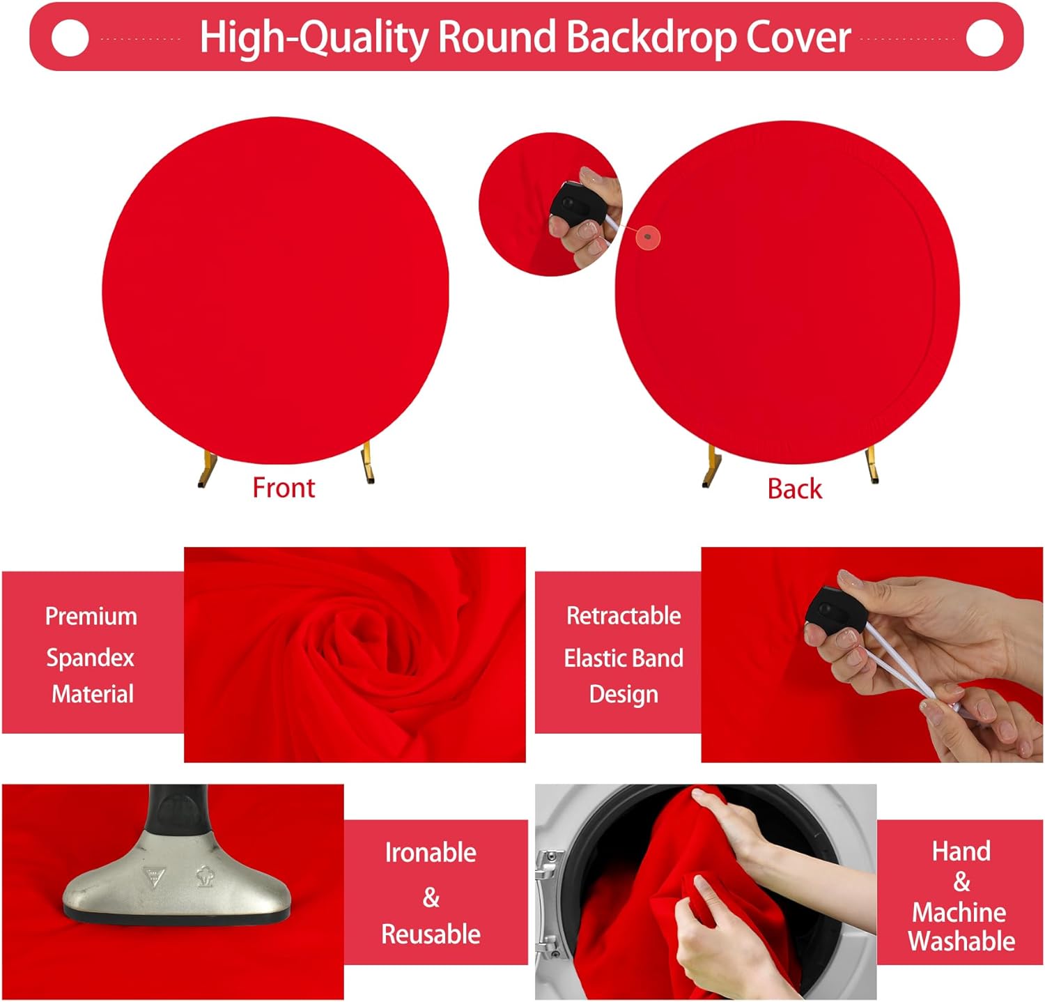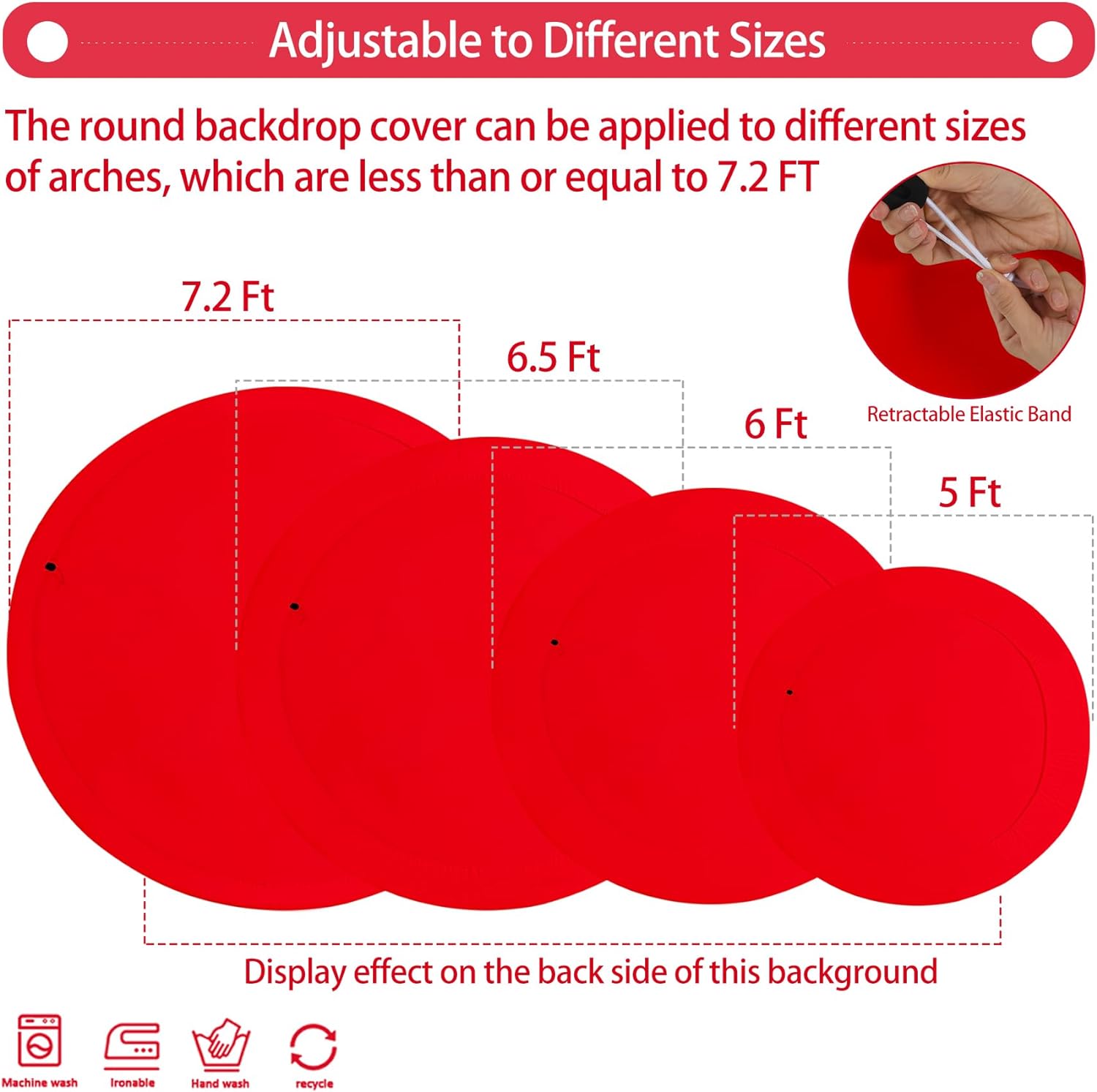 • Material: Crafted from high-density, wrinkle-resistant polyester fabric, our round backdrop cover ensures opacity and durability. The elastic bands and size adjusters on the back of the circular balloon arch cover provide a secure fit and easy customization.