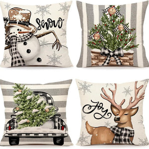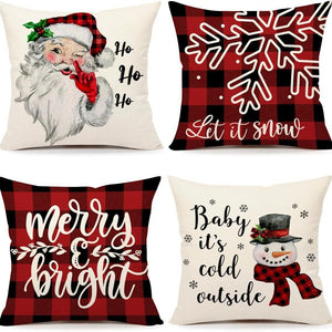 Bulk Black and Red Set of 4 Christmas Pillow Covers 18x18 Inches for Winter Holiday Home Sofa Couch and Indoor Decorations Wholesale