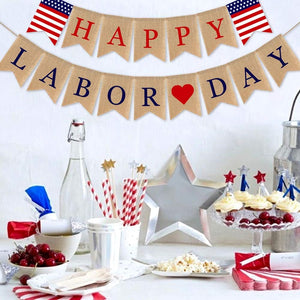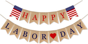 - One set of burlap banner featuring “HAPPY LABOR DAY”