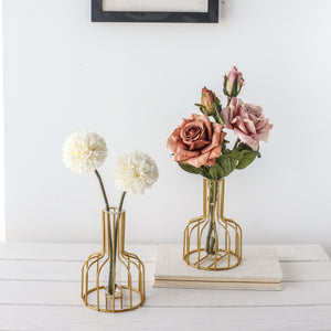 Bulk Clear Glass Test Tube Vase with Metal Frame Hollow Iron Vase for Wedding Living Room Home Table Centerpieces Decorations Wholesale