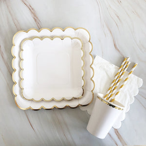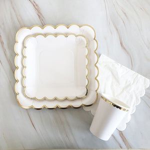 Bulk Disposable Square Round Paper Plates Sets with Foil Scalloped Edges for Wedding Bridal Shower Birthday Wholesale