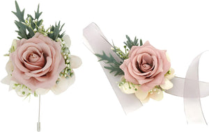 Bulk Dusty Pink Artificial Rose Wrist Corsage and Boutonniere Set for Wedding Prom Party Wholesale