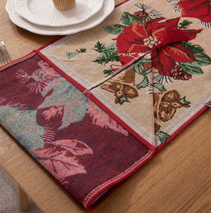 - Unique floral design, triangular shape with handmade tassel decoration makes our elegant table runner even more chic Protect your table from scratches and stains, reduce friction and add color to your table