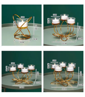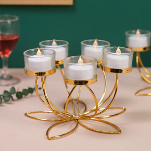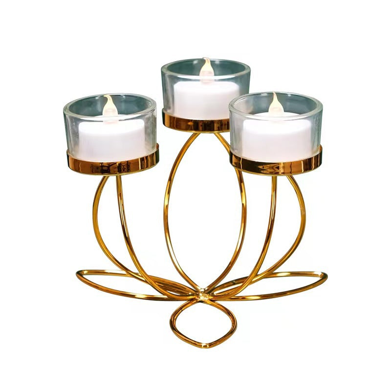 Bulk Geometric Lotus Flower Tealight Candle Holders Golden Metal Table Centerpiece Wholesale