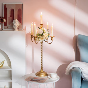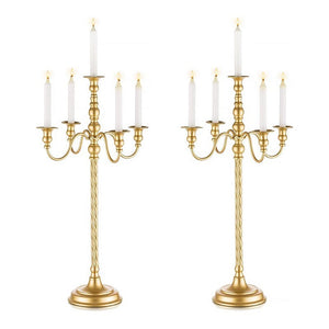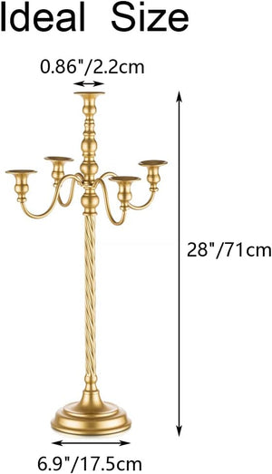 Premium Gold 5 Arm Candelabra 28" Tall Elegant Metal Spiral Wedding Candle Holder for Banquet Home Décor All Event Centerpiece