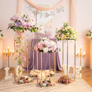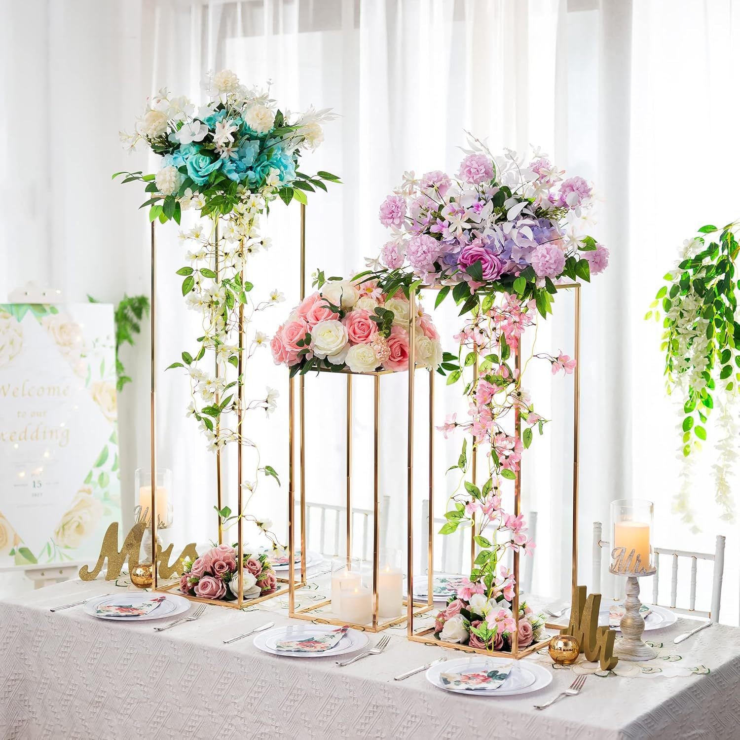 Bulk Gold Geometric Square Aisle Flower Stand for Party Flowers Display Pedestal Stand Wedding and Birthday Decor Wholesale