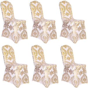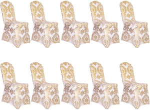 - Enhance your event or home decor with the sophistication and practicality of our Golden Flower Print Brown Chair Cover. Experience luxury and convenience in one seamless package.