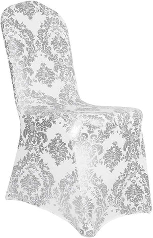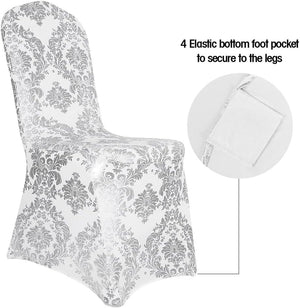 - Introducing our exquisite Golden Flower Print Brown Chair Cover, designed for elegance and durability. Crafted from premium spandex material, this cover boasts superior elasticity and anti-wrinkle properties, ensuring a comfortable and snug fit. The golden printing technique adds a touch of luxury, embellishing your chairs with intricate floral patterns.