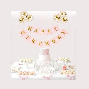 - Package of 1 x Happy Birthday Banner (5 balloons 12 Inch, 13 flags 6.5*4.5 Inch, 197 Inch webbing roll)
