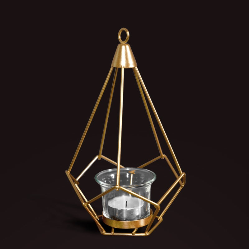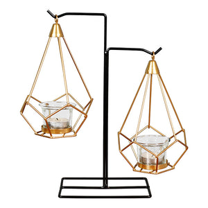 Bulk Irregular Candle Holder with Hanging Geometric Basket Tall Black Iron Stand Candlestick for Tabletop Centerpiece Wholesale