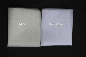 – Single-Layer Illusion Tulle: Feather-light yet structured, adorned with hand-stitched lace appliqués (floral/microleaf designs).