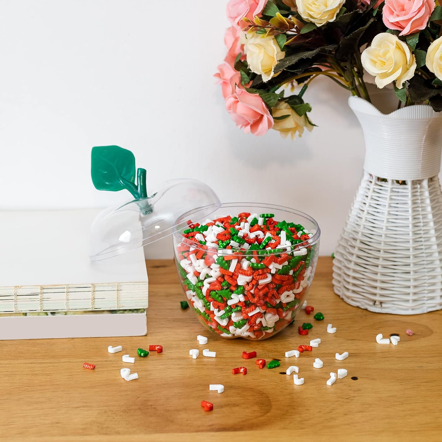• Our large clear apple containers are designed to hold more items than other jars, making them perfect for storing candy, gifts, or decorations. The apple design adds a charming touch to any occasion, making these containers ideal for home decor and special celebrations.