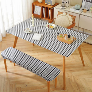 - Made of PVC material, it has excellent waterproof and oil-proof properties, effectively blocking the penetration of moisture and oil stains, and protecting the desktop from contamination and damage. The locking design on both sides ensures that the table cover will not roll over easily, extending its service life and improving stability. It has strong wear resistance and is not easy to wear. It also has good high temperature resistance and is suitable for outdoor environments. The four-sided fit design ensures that the table cover fits flatly on the desktop and is not easily displaced, making it more stable and reliable to use. Highly elastic material, full of elasticity, can fit perfectly on the table, not prone to wrinkles, and overall beautiful.