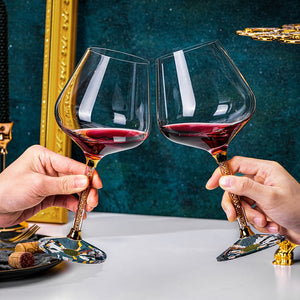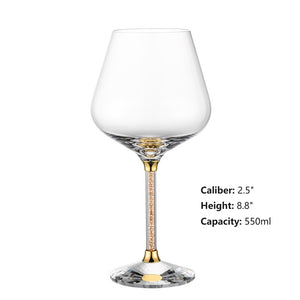 - The use of high-quality lead-free crystal ensures that the drink is pure and free of impurities, providing you with the purest and clearest taste experience. The unique crystal long handle design is decorated with gold rhinestones to embellish it with a sense of luxury, making the overall design more noble and dazzling. It not only makes the wine glass more elegant, but also avoids the influence of hand temperature on the wine temperature, allowing your drink to maintain the ideal temperature.