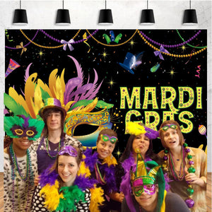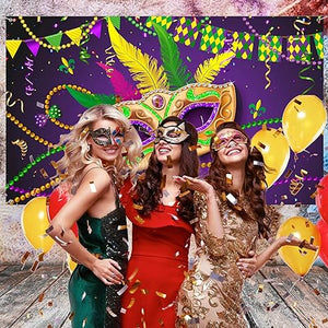 - Made of vinyl material, high-resolution digital printing, eye-catching details, bright colors, reusable, not easy to fade, not waterproof, foldable and easy to carry. There are also classic colors and carnival-themed party elements, such as bead chains, balloons, masks, etc., suitable for your birthday or carnival party, adding beautiful colors to your carnival party!
