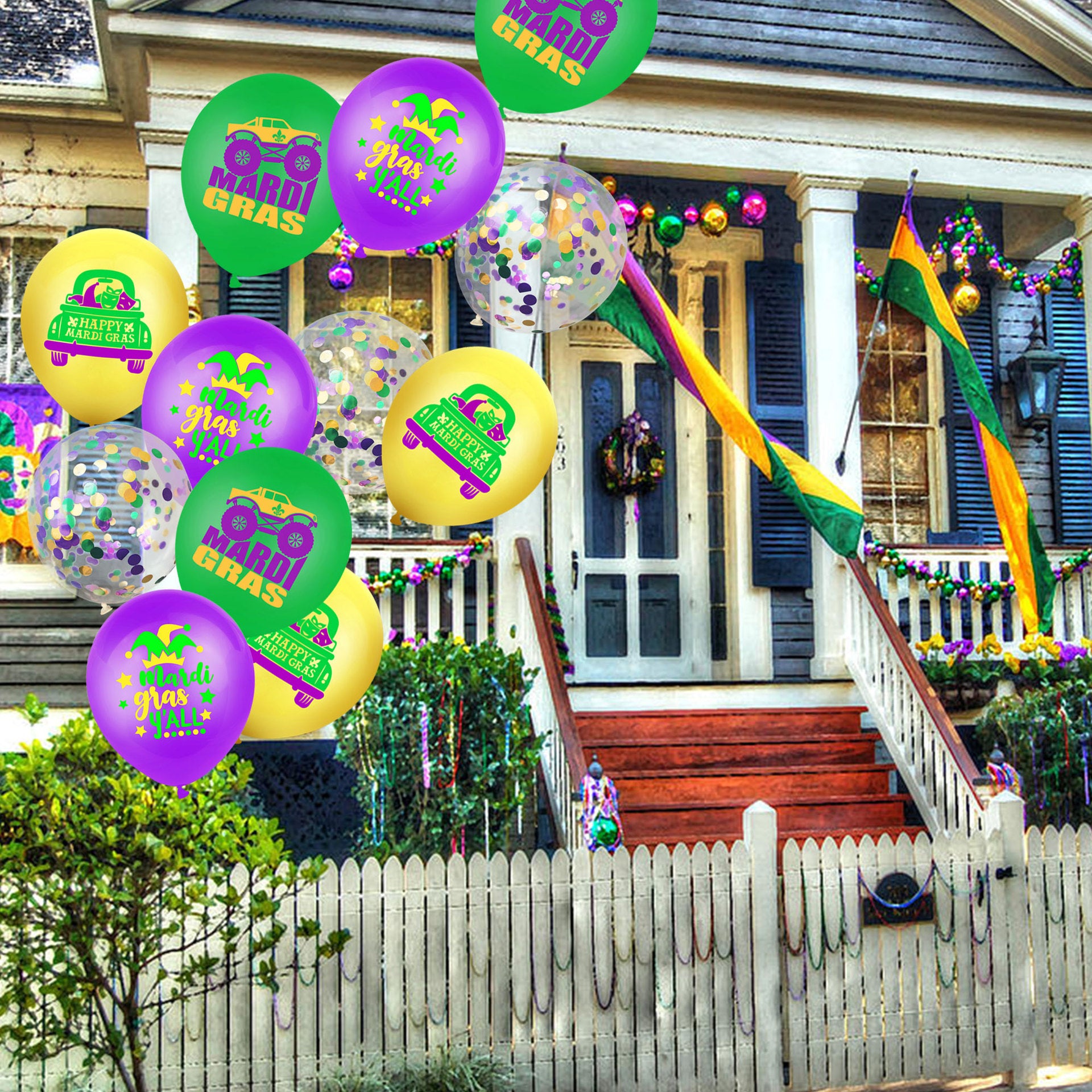 • The balloons are made of high-quality latex, which is durable, not easy to burst, harmless and non-toxic, ensuring that your party can continue to have fun. The balloons use the iconic purple, green and gold colors of the carnival, showing a strong festive atmosphere and adding color to your party.