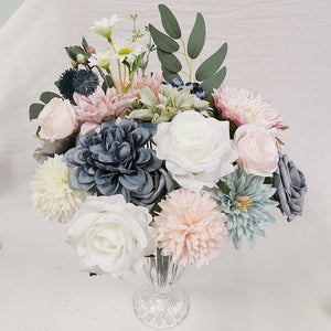 - Assorted silk flowers + bendable stems + lifelike foliage