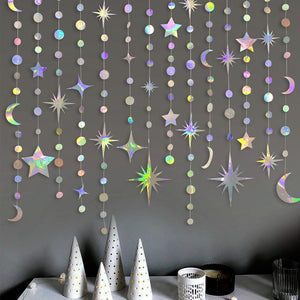 Bulk Neon Star Moon Circle Dot Garland Backdrop Streamers Sparkling Party Decoration Kit Suitable for Children's First Birthday Ramadan Eid al-Fitr Baby Shower Wedding Decor Wholesale