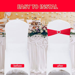 - Made of durable polyester to ensure a smooth and comfortable experience, it has good elastic function and can be easily worn with different styles of belts, and fits most chairs. Easy to clean, even if it gets stained during an event, it can be restored clean easily. Also easy to put on and take off, no need to tie a bow, just stretch over the chair cover.