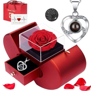 - The preserved rose necklace set includes a necklace with 100 languages I LOVE YOU,a gift box of rose,and a greeting card