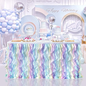 Rainbow Table Skirt, Mermaid Table Skirt, White Table Skirt, Pink Table Skirt, Rose Pink Table Skirt, Light Pink Table Skirt, Blue Table Skirt, Aquamarine Table Skirt, Mixed Color Table Skirt, Mixed Blue Color Table Skirt |