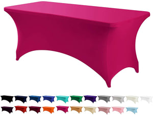 - Available in three versatile sizes: 4FT, 6FT, and 8FT, these tablecloths are crafted from a premium blend of 90% polyester and 16% spandex. This combination ensures a soft, wrinkle-resistant, and highly elastic fabric that fits snugly around your table.