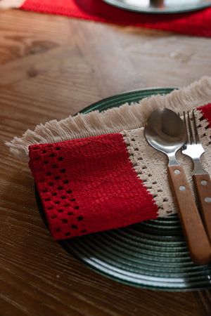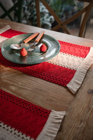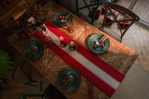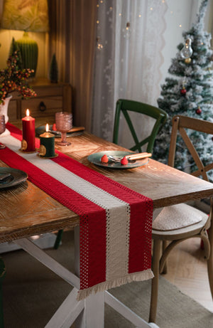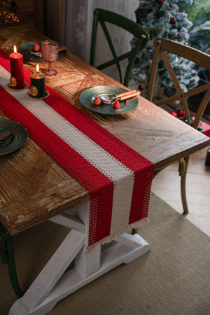 - The red and white striped table runner is made of natural cotton and linen material, ensuring that the product is environmentally friendly and environmentally friendly. This makes the table runner softer and more breathable, bringing a natural beauty to your tabletop.